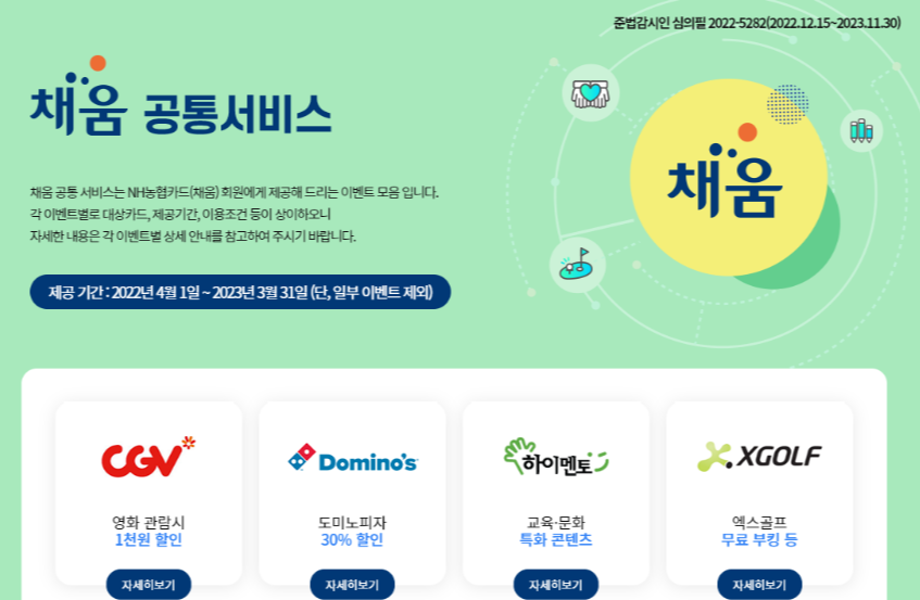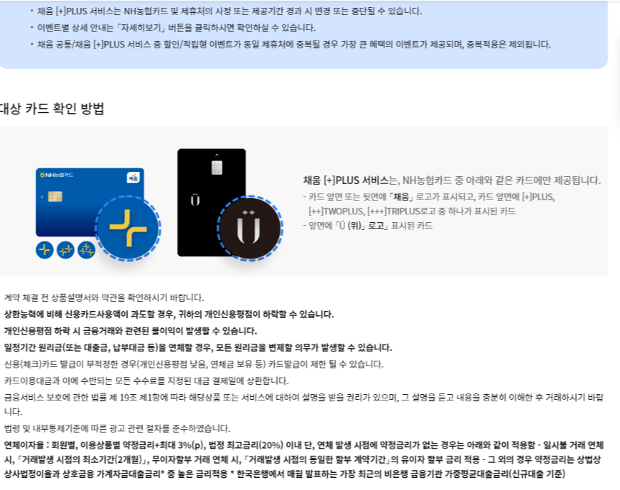 - 카드서비스 적용은 NH농협카드 전산상 등록된 해당 가맹점(업종) 이용금액에 한합니다.