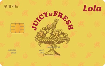 - 롤라머니 적립 제외 대상 : 롯데 그룹사가 아닌 모든 가맹점 이용금액, 롯데 그룹사 가맹점 중 일부 임대 매장 및 기타 쇼핑몰 입점 매장 이용금액해외 이용 시 별도의 수수료가 부과됩니다.