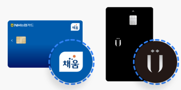 - 채움 공통 서비스는, NH농협카드 중 아래와 같은카드에만 제공됩니다. · 앞면 또는 뒷면에 「채움」 로고가 표시된 카드 · 앞면에 「Ü (위)」 로고」 표시된 카드