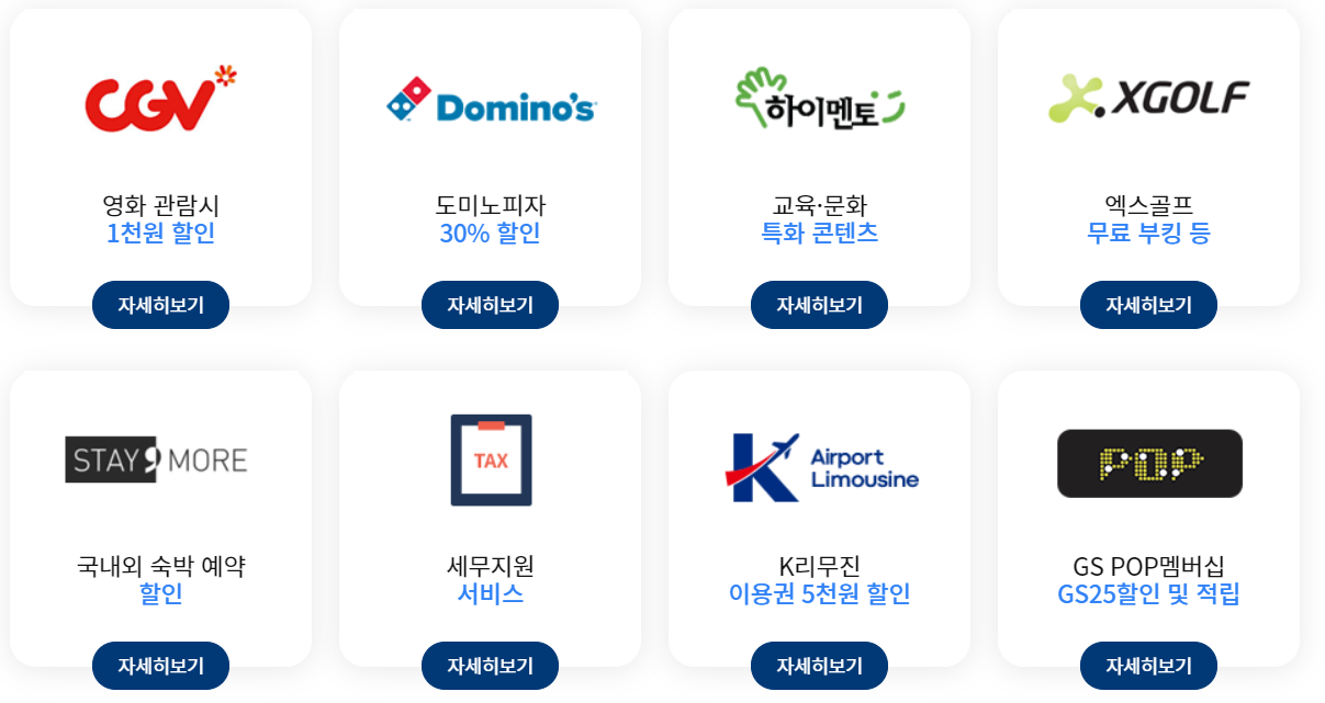 - 전월실적 산정시 할인 대상 업종 이용액은 50% 반영됩니다.