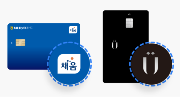채움 공통 서비스는, NH농협카드 중 아래와 같은카드에만 제공됩니다. - 앞면 또는 뒷면에 「채움」 로고가 표시된 카드 - 앞면에 「Ü (위)」 로고」 표시된 카드