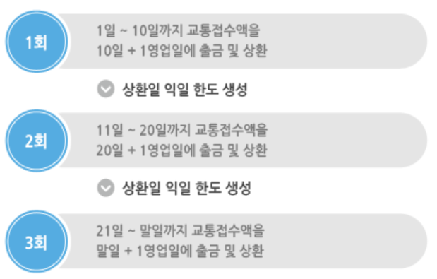 - 지정 상환일에 잔액이 부족한 경우, 결제일 전일까지 매일 1회 출금되며 결제일을 경과한 경우 연체 처리됩니다.