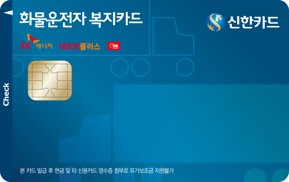 - 국토교통부가 시행하는 [화물운전자 유가보조금 사업]에 당사가 사업자로 선정되어 유가 할인 기능이 부가된 화물운전자 복지카드를 개인 신용카드 또는 체크카드로 발급